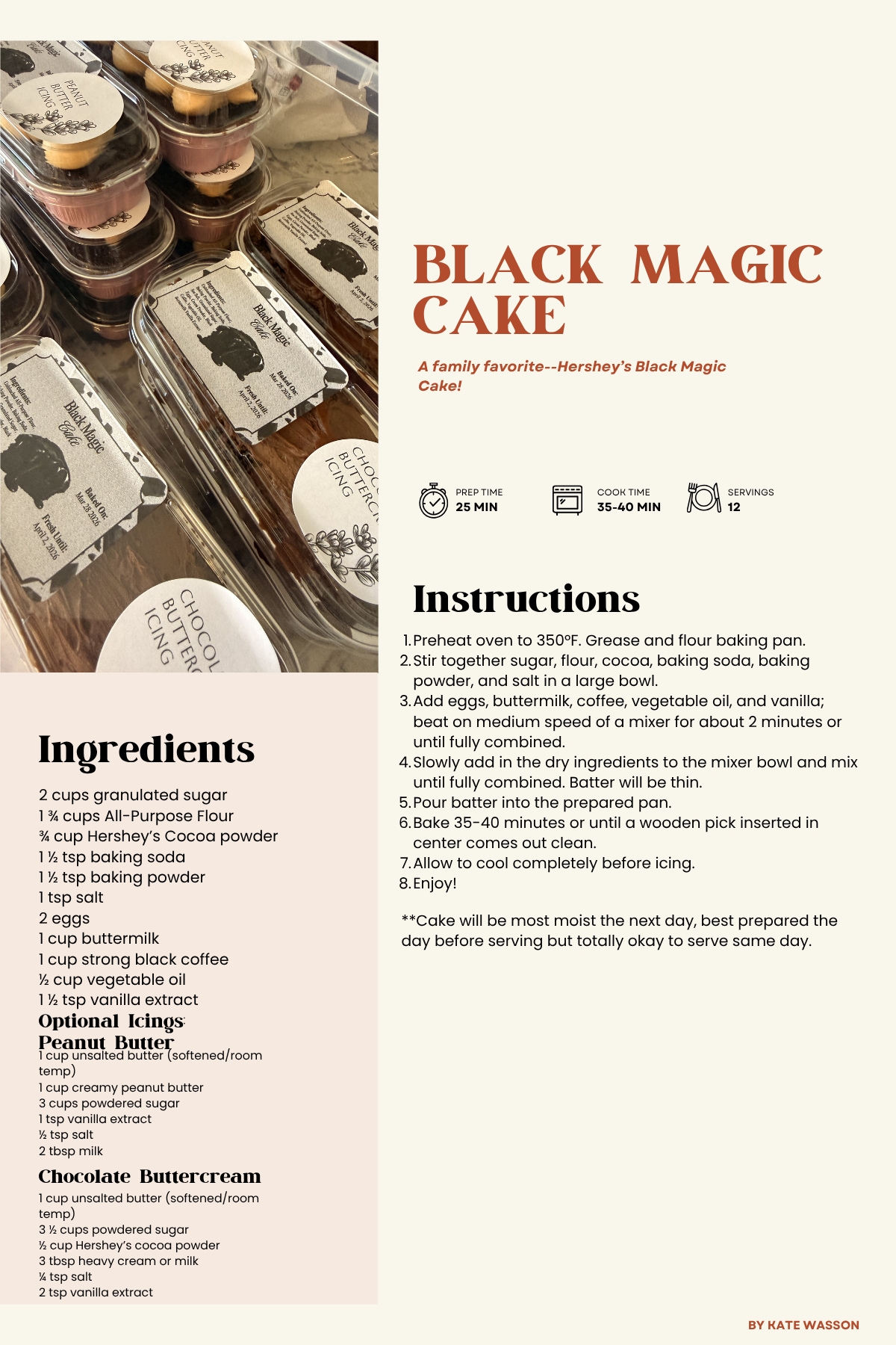 **Cake will be most moist the next day, best prepared the day before serving but totally okay to serve same day.