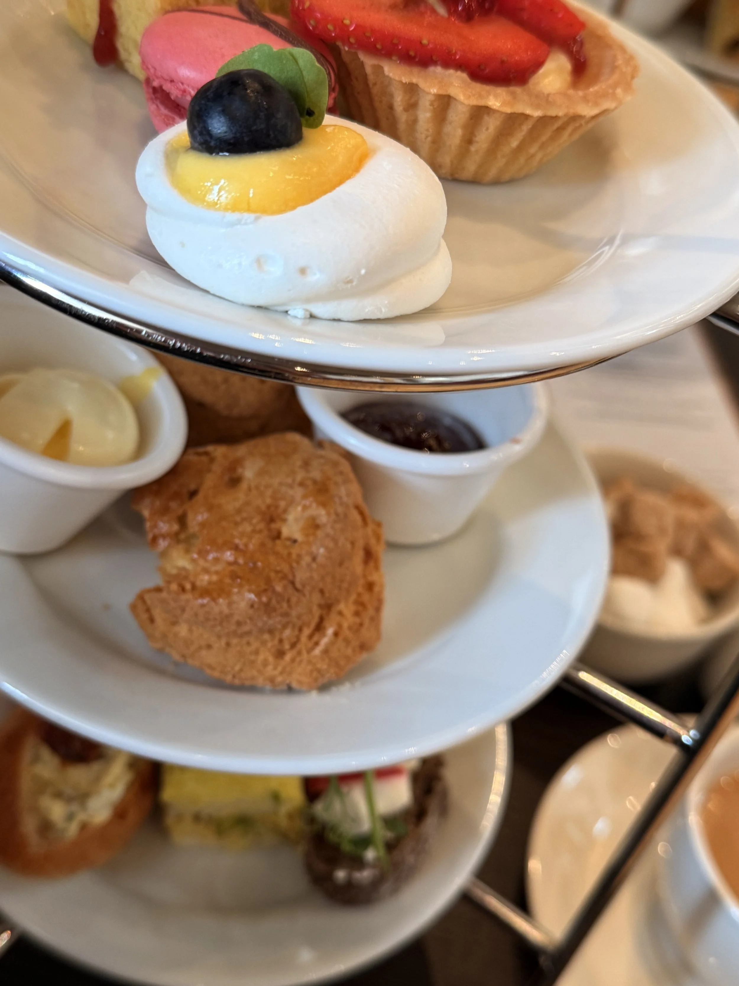 When I visited last year, we had a tour guide who did a great job at providing facts & history as we walked about. We didn’t opt to do that this trip but I highly recommend it. You learn so much more about the castle itself and the town surrounding it as well as all those who dwelled in it. However, if you prefer to tour yourself it is very easy to navigate & is fairly expansive—there are several buildings honoring fallen soldiers from various branches, the Scottish Crown Jewels are on display, there are dungeons you can explore, and a private chapel. There are refreshment options on the grounds, including a coffee/tea/soda truck that has snacks & ice cream and more filling options such as a grab & go cafe. We opted to do Afternoon Tea in the Garden Room which was a lovely experience. Eat person gets a tiered tray of light treats (sweets like a macaron, lemon meringue, scones with jam & clotted cream, and varies finger sandwiches like coronation chicken, salmon, egg) and choice of hot tea. I went with my tried and true favorite, English Breakfast, and believe my mom tried elderflower & lemon but truthfully can’t remember, they have a good selection of teas to pick from. You can check out their menu on my other post Scotland: Food.